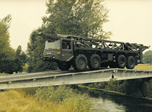 Engin poseur de pont, le LEGUAN est un véhicule dédié au transport et à la pose d’un pont rigide de 26 mètres. Conçu en partenariat avec MAN et KRUPP.